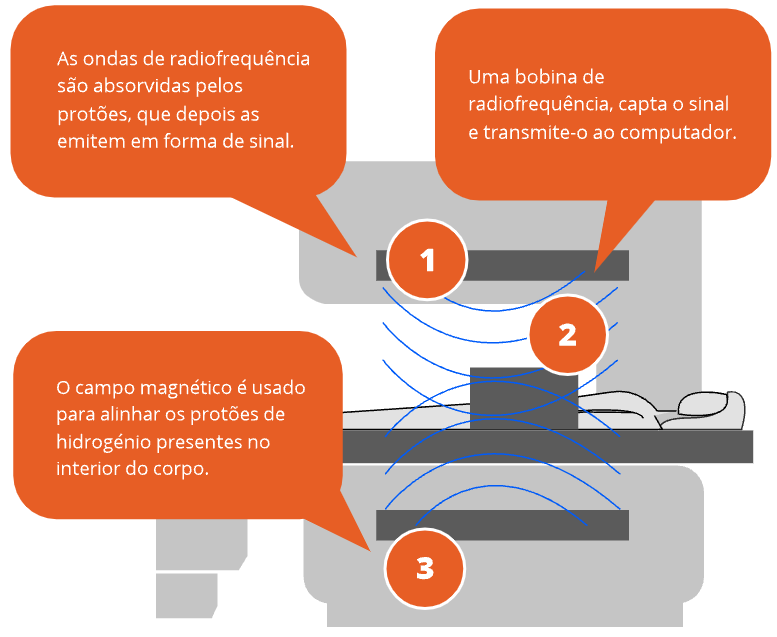 As imagens são formadas por um computador, que processa os sinais que são emitidos pelos tecidos do corpo humano. Este sinal é gerado, usando um campo magnético em combinação com pulsos de radiofrequência. As diferentes características dos tecidos são reveladas através deste processo e traduzidas em diferentes níveis de contraste na imagem.
